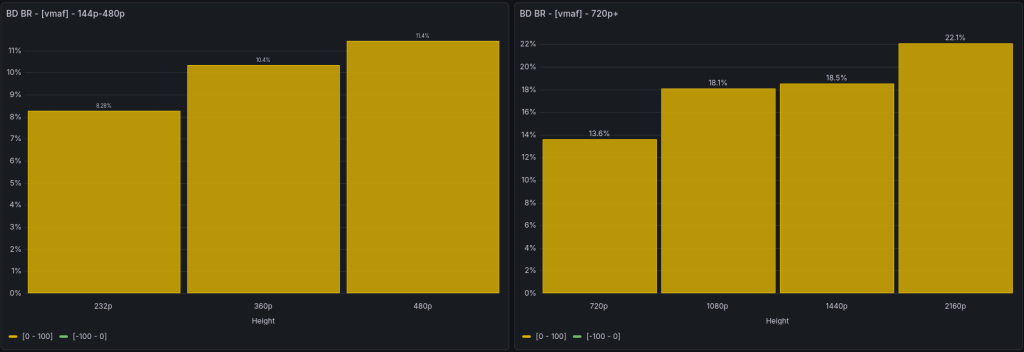 Basically, nothing unexpected. A bitrate deficit within 7% – 11% for main frame sizes. Which is not bad overall.