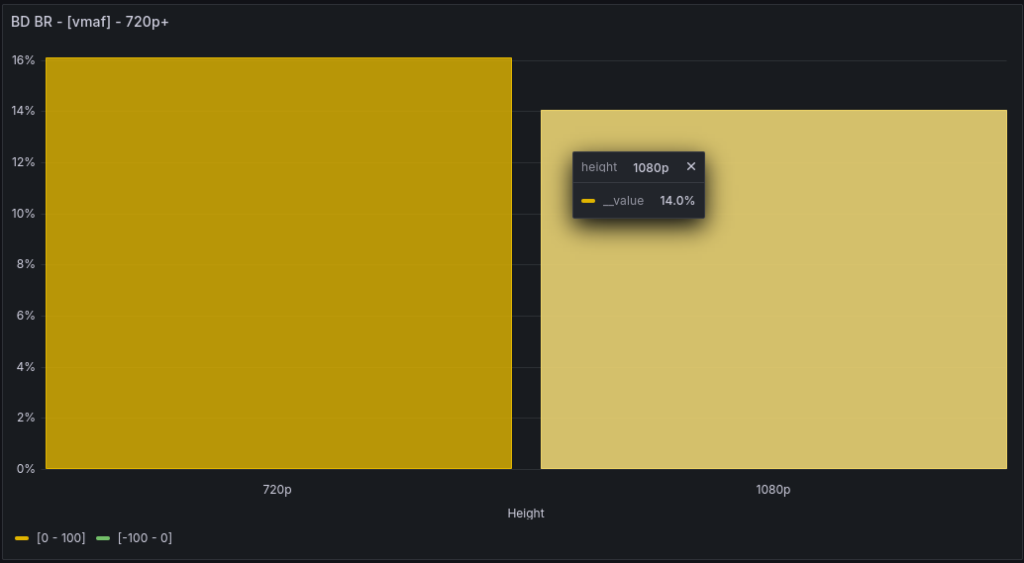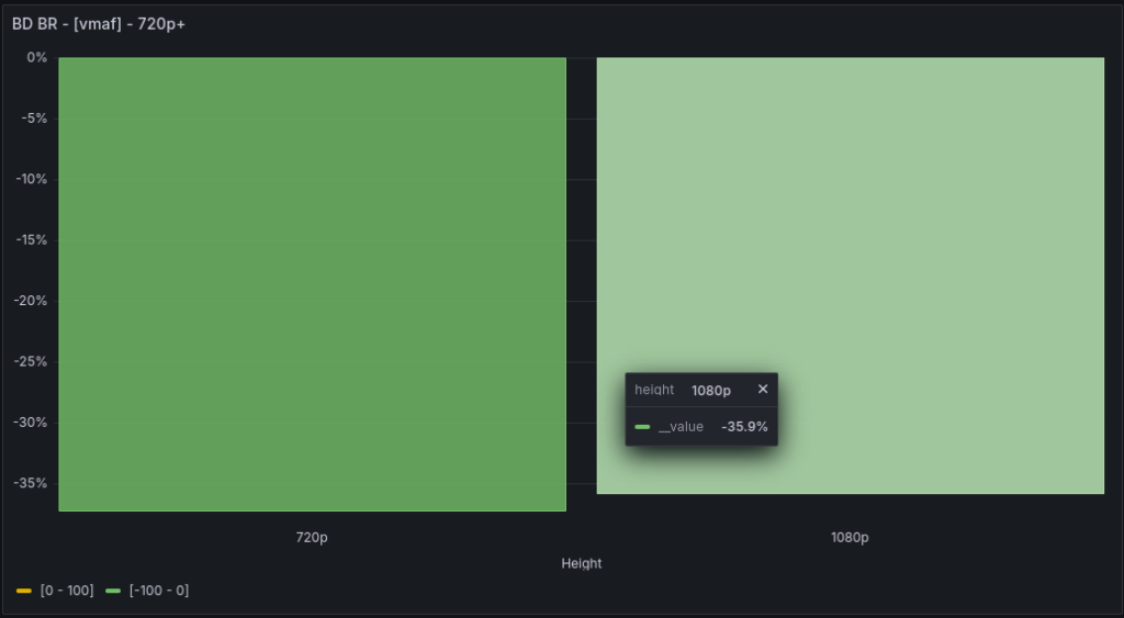 Ну и на засладку — битва двух якодзун малинки с апельсинкой. Да, здесь ожидаемый выигрыш, учитывая отличные показатели при сравнении с другими кодеками и слабую реализацию H.264 RKMPP. На 1080p экономия 17% битрейта: